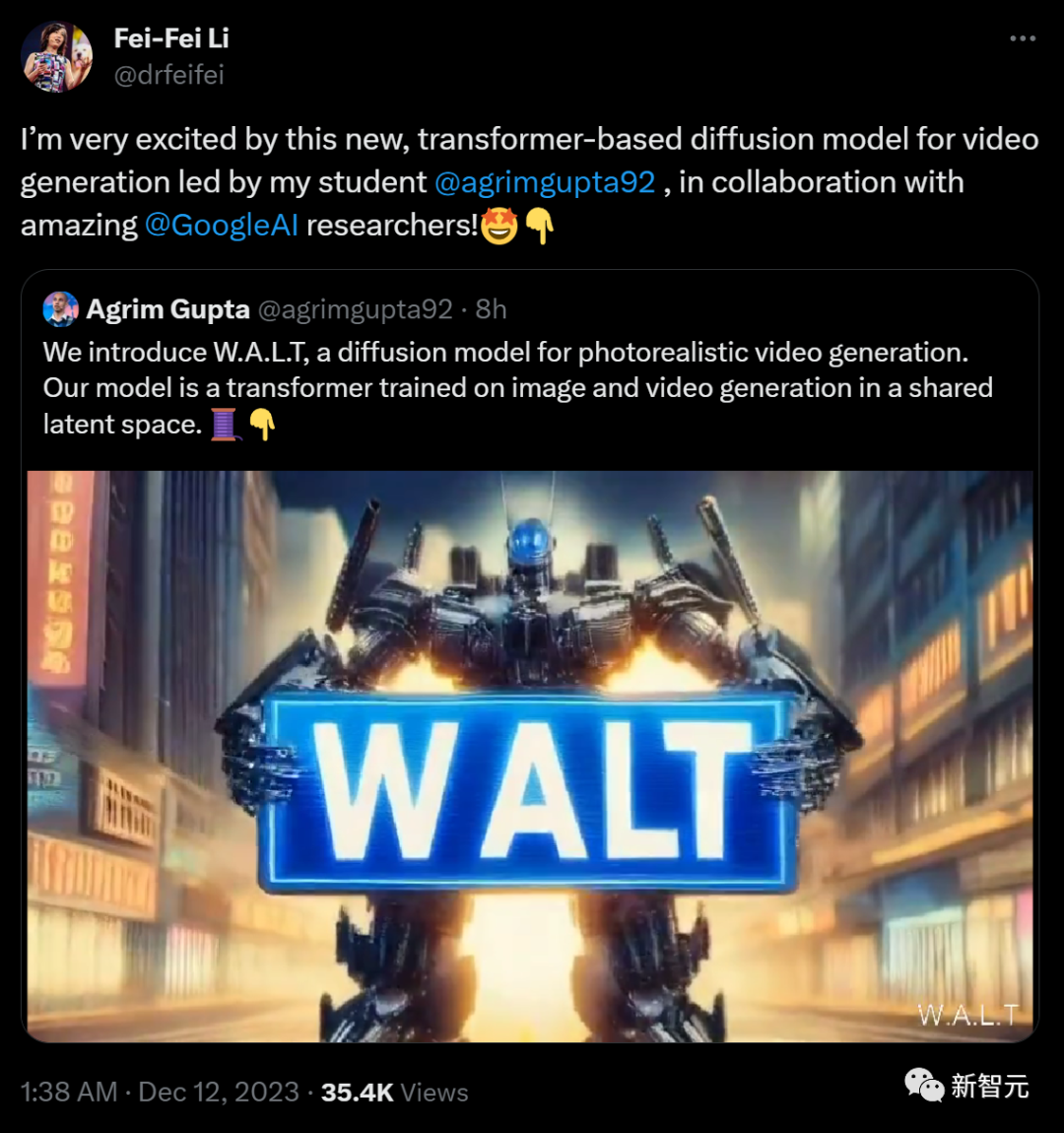 当然,谷歌在视频生成上也不甘落后,先是与斯坦福李飞飞团队共同发布了W.A.L.T,用Transformer生成的逼真视频引来大波关注。