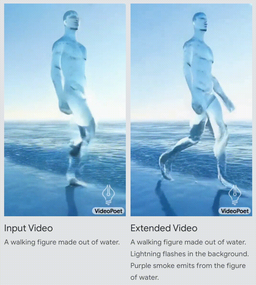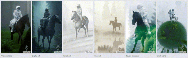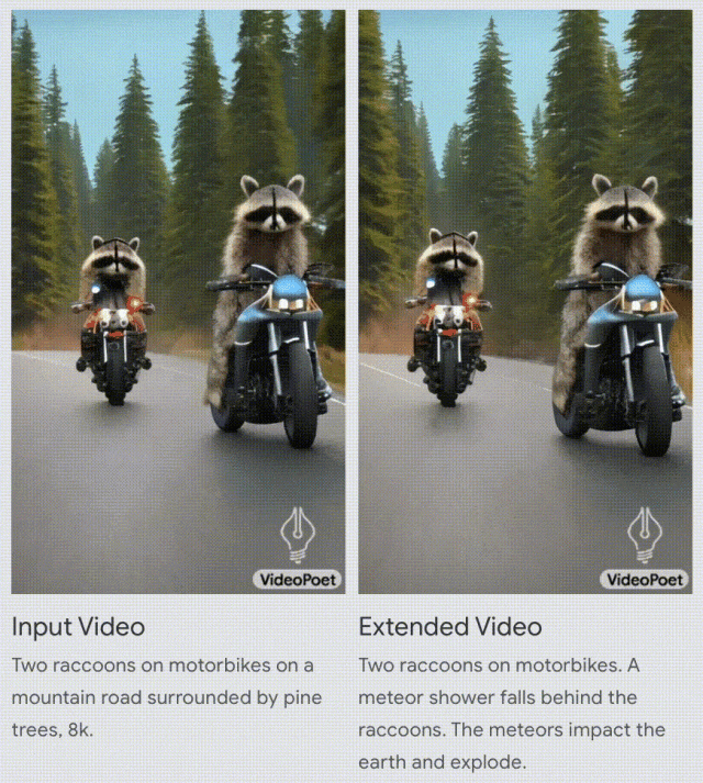 VideoPoet不但可以为输入的图像通过文字描述来添加动态效果,并通过文本提示来调整内容,来达到预期的效果。
