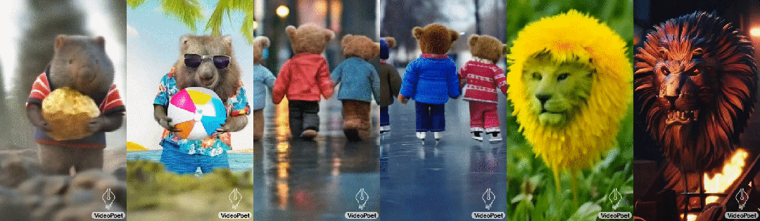 通过反复循环,VideoPoet通不仅可以很好地扩展视频,而且即使在多次迭代中,也能忠实地保留所有对象的外观。