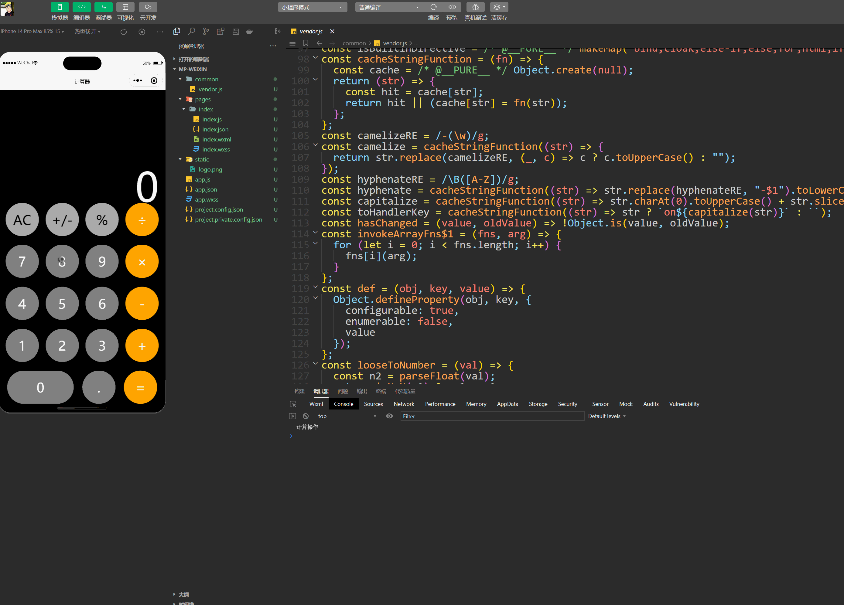 </script>好,那么我们来看一下效果,点击运算符,控制台输出 计算操作,点击数字,控制台输出 输入操作,效果如下:
