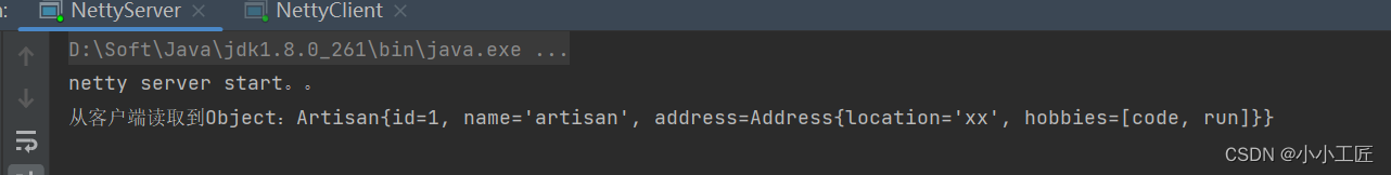 }在channelRead方法中,当通道读取到数据时,会将接收到的ByteBuf对象转换为字节数组,并使用ProtostuffUtil工具类的deserializer方法进行反序列化操作,将字节数组还原为Artisan对象。Artisan类是客户端发送的数据对应的Java对象。