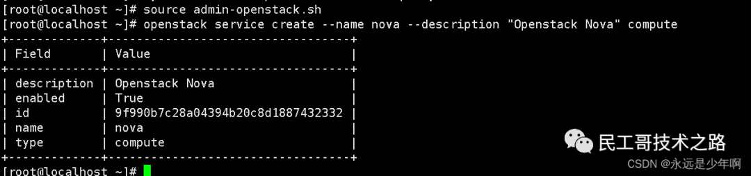 来创建Nova的Service服务,该命令执行结果如下所示:
