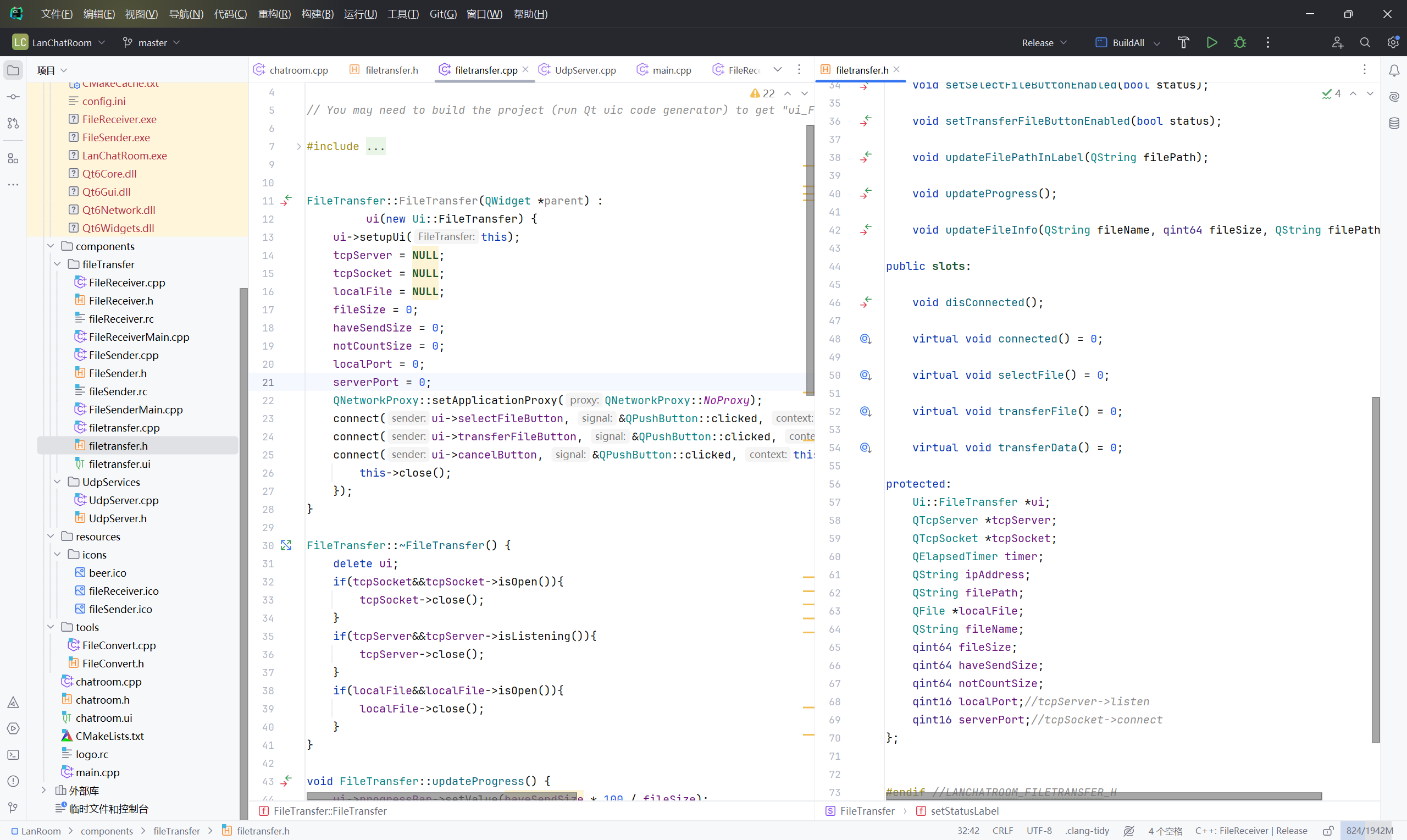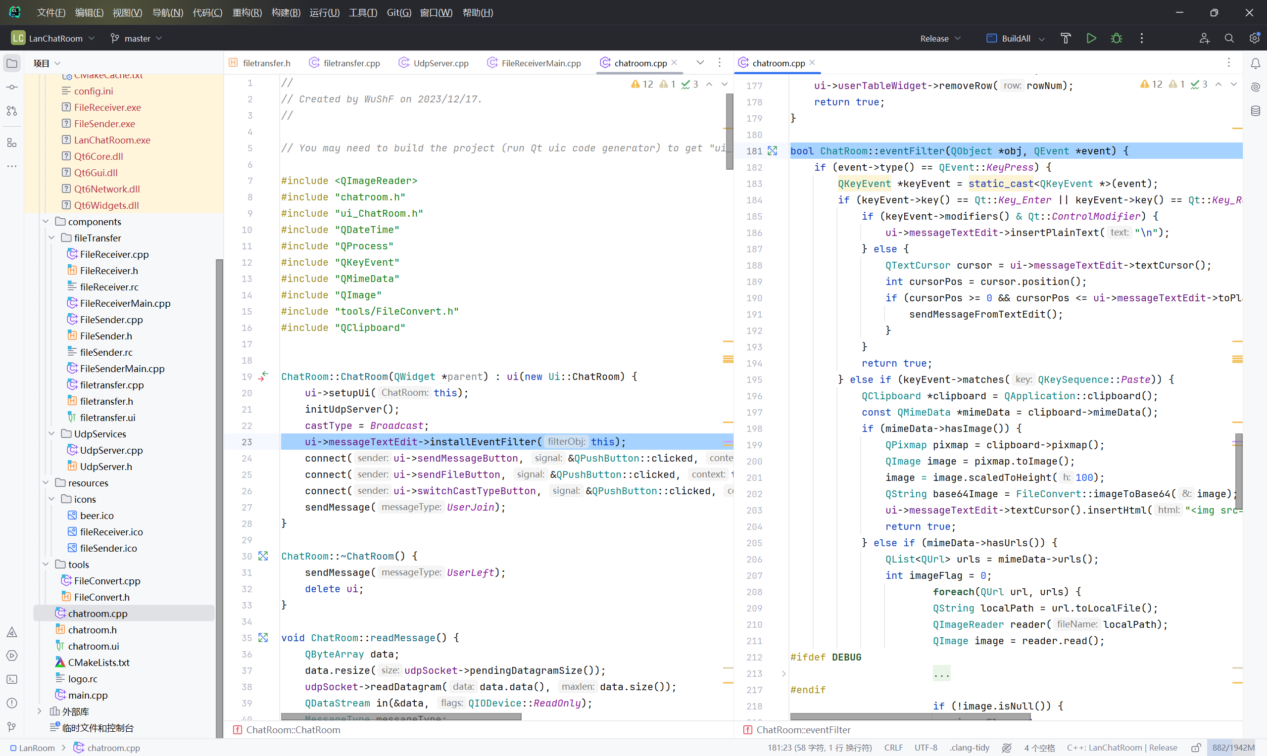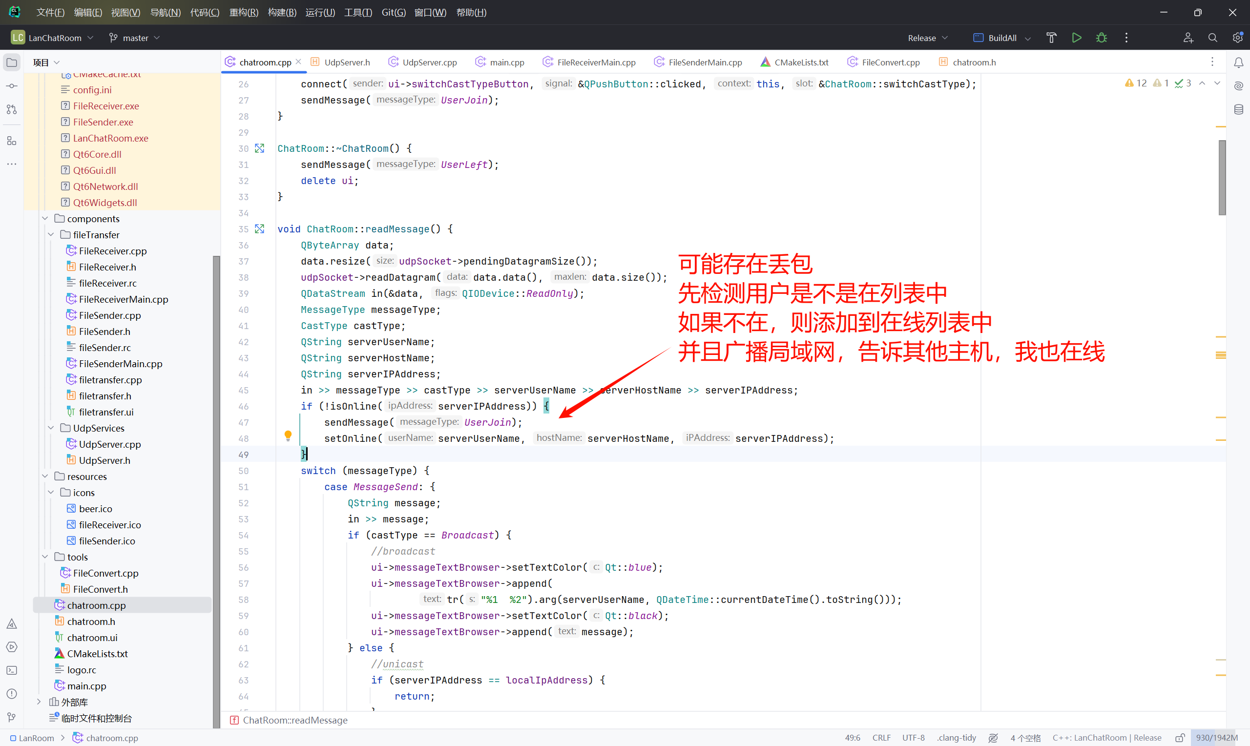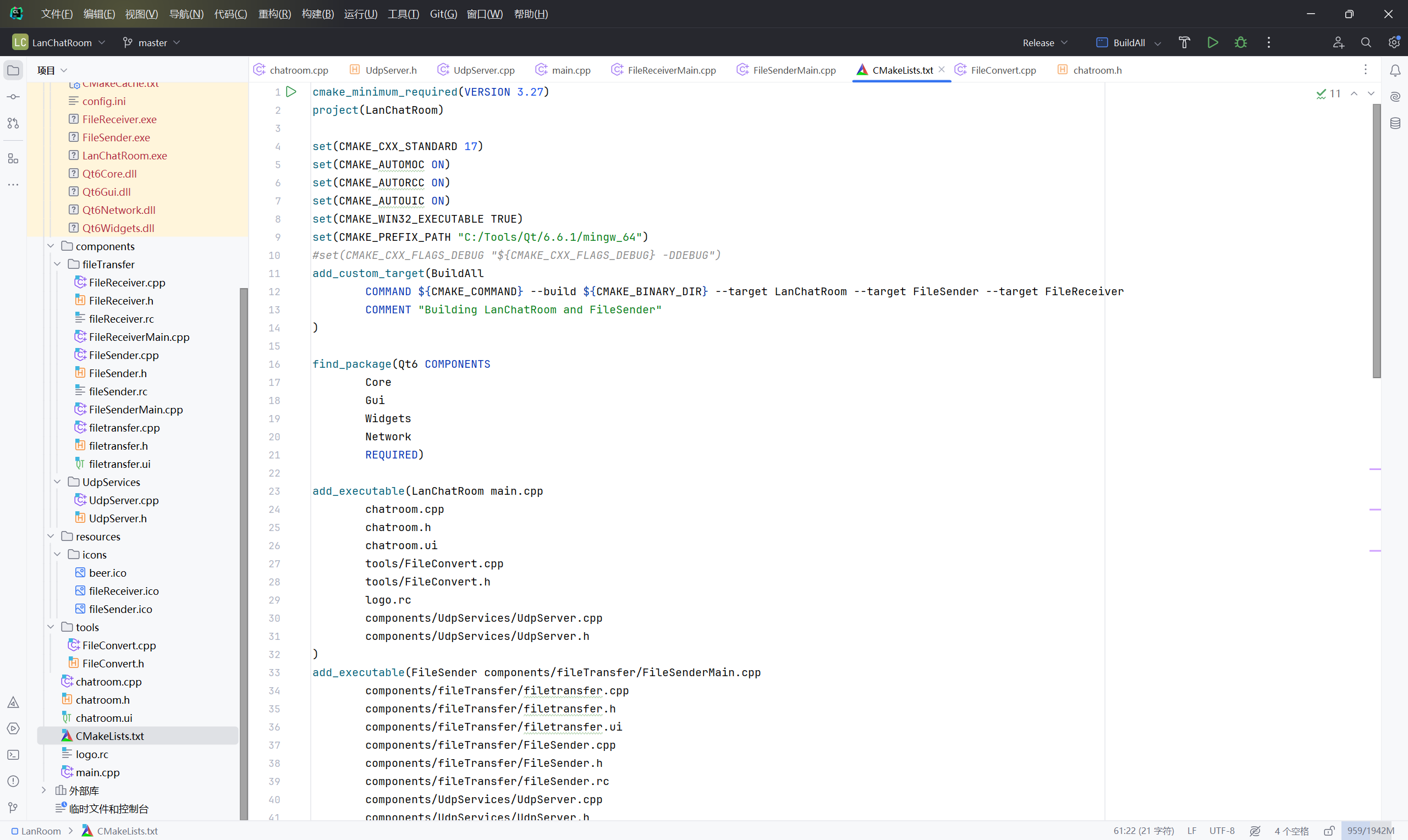 CPP已经结课,我提交的项目是Qt的入门项目,局域网聊天室LanChatRoom。