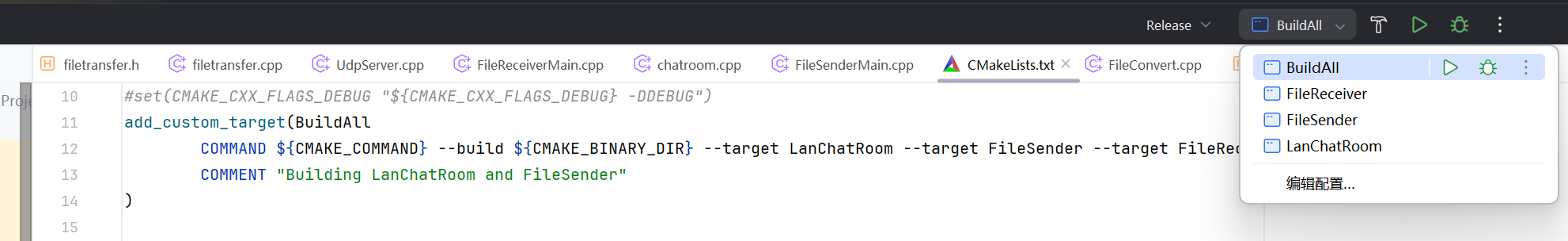 一个项目构建多个可执行文件,而不是为每一个可执行文件创建新的项目。 这需要修改CmakeList文件,为每一个构建目标指定文件。