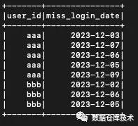 具体题目如下,这里把期望结果的数据做下调整,删除bbb的2023-12-10的登录结果。