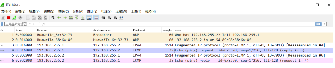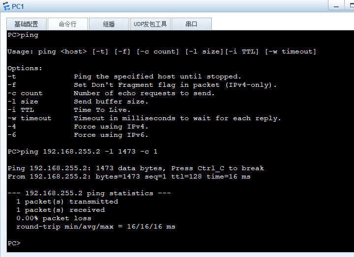 说下命令,Ping 192.168.255.2这个都能够知道啥意思,-l表示ICMP的数据部分(不含其它任何头部信息)为1473,-c 1只发送一次。