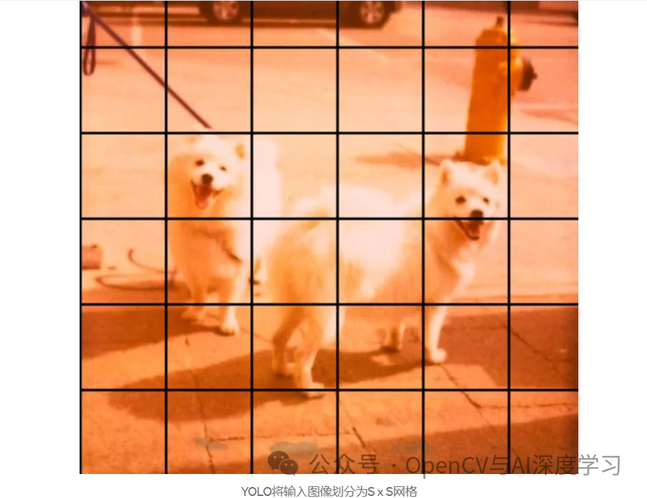 YOLO 的方法是将图像划分为 S x S 网格(如下所示),其中每个网格单元负责生成边界框和置信度得分输出。