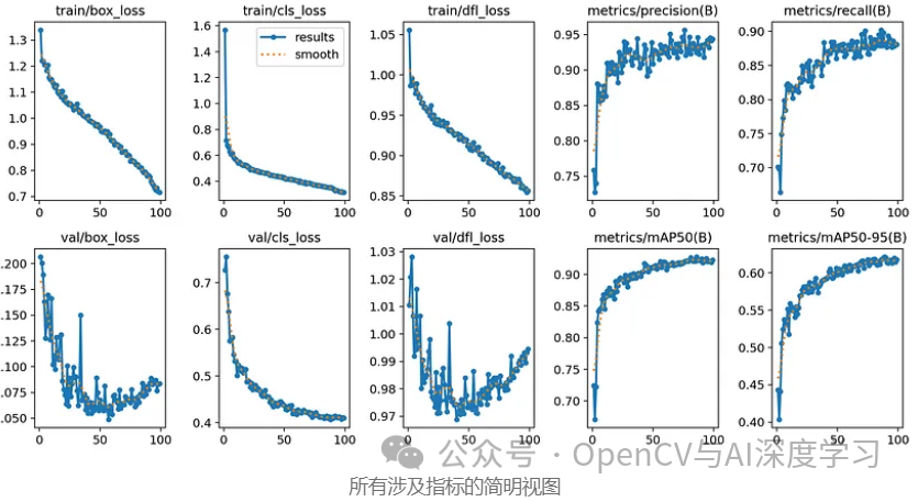 results = model.train(data="config.yaml", epochs=50, patience=5)如上所示,我们可以简单地从之前设置的 config.yaml 文件中加载数据。我们将开始训练 100个epoch,耐心参数跨越 10 epoch,这意味着如果连续10个 epoch 没有看到任何改进,模型将提前停止训练。