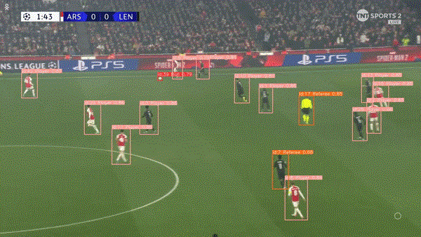 cv2.destroyAllWindows()在我们的检测模型中添加跟踪将有助于跟踪视频剪辑中连续帧中的对象,它通过为每个检测到的对象分配唯一的 ID 来实现这一点。因此,它还可以帮助绘制足球等物体随时间变化的轨迹,并根据其跨帧的运动绘制路径。