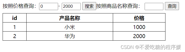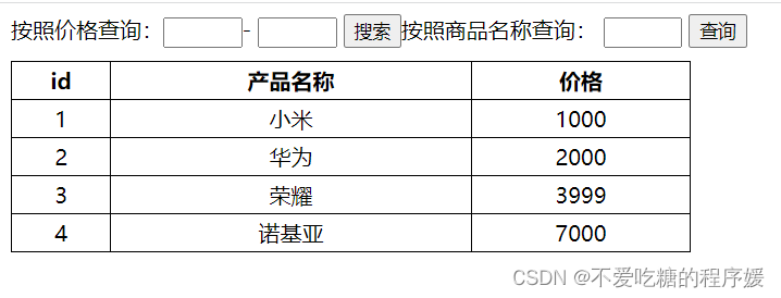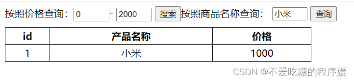 1.能够根据价格搜索出对应的商品; 2.能够根据商品名称查询出对应商品;