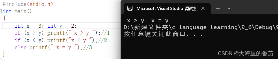 if (x > y) printf(" x > y ");//1