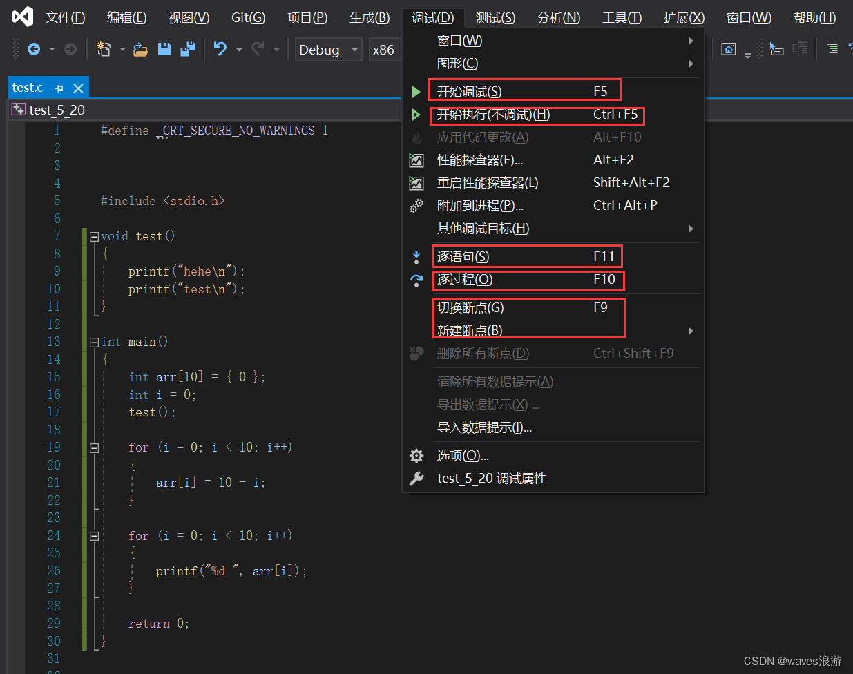 此外,只有在Debug环境下才能够进行调试,而在Release环境下是无法进行调试的!!!