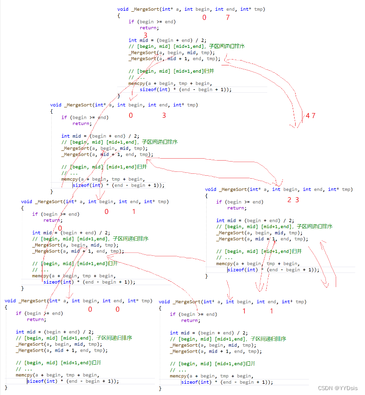 void MergeSort(int* a, int begin, int end, int* tmp)