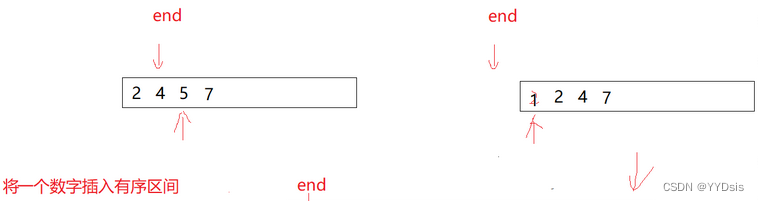 注意点:此算法中,当tmp比第一个数大/小时,end会到-1的位置。所以采用图中标记用法。