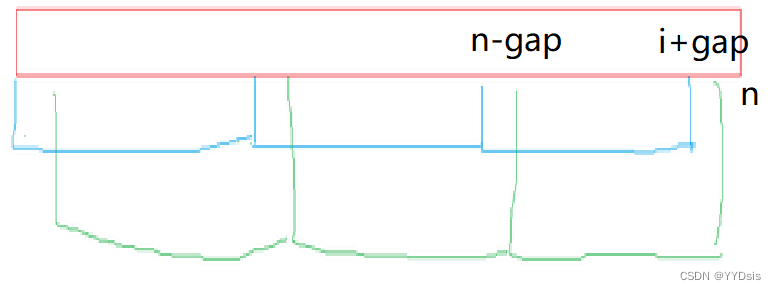 int begin2 = i + gap, end2 = i + 2 * gap - 1;//((i+gap)+(gap-1))