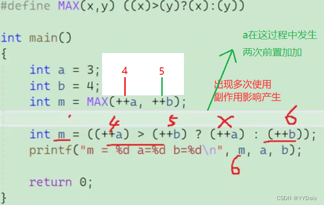 2.宏的缺点: 1,用一次,会在文本中插入一次代码 2,无法调试 3,与参数类型无关,不够严谨 4,可能存在运算符优先级的问题