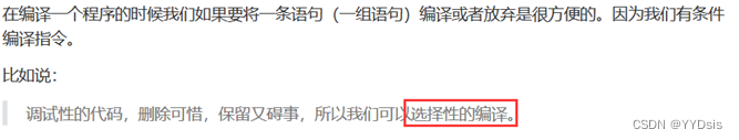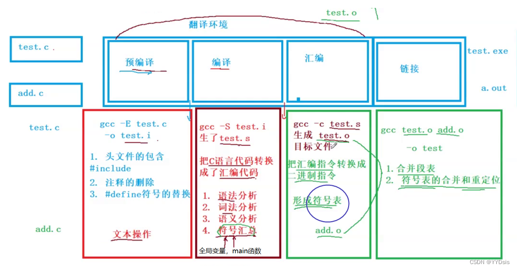 前言:大家好,这里是YY;此篇博客主要是程序的编译/链接/预处理详解的知识点;包含【程序的翻译环境和执行环境】【编译和链接的过程】【编译的几个阶段】【运行环境】【预定义符号】【define/undef】【#define替换规则】【#和##的应用】【带副作用(功能)的宏参数】【宏与函数的对比】【条件编译(预处理指令)】【文件包含过程】【解决嵌套头文件包含问题方法】