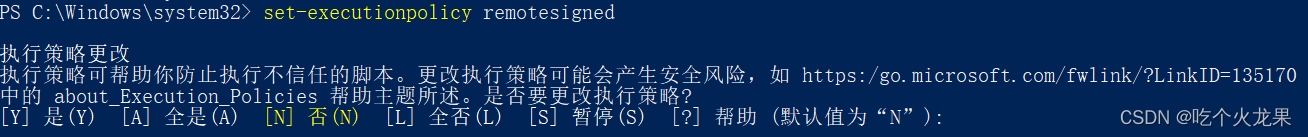 2.复制Windows Powershall(window+X)在windows以管理员的身份运行,命令窗口输入set-executionpolicy remotesigned,回车,输入Y。