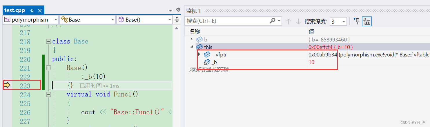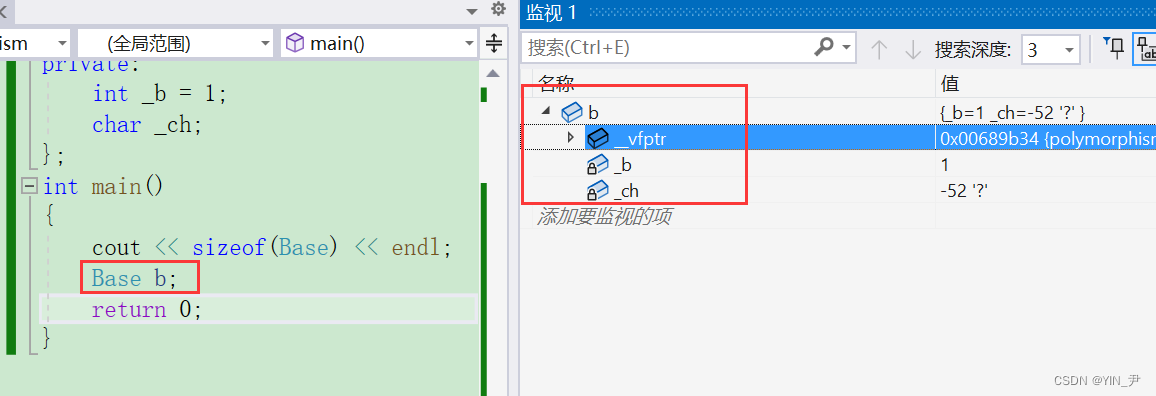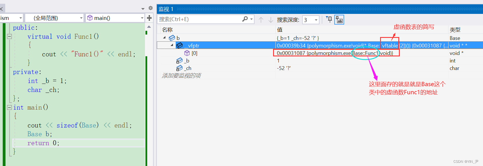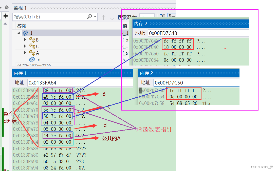 🆗,我们看到除了两个成员变量之外,还有一个_vfptr。
