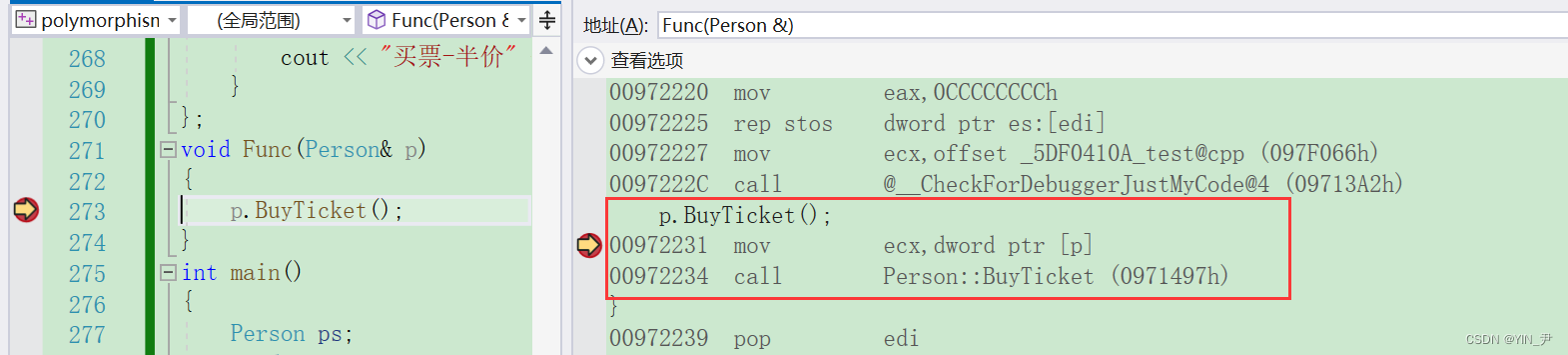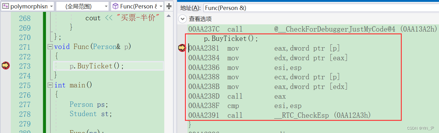 然后我们来观察一下多态调用时的汇编: