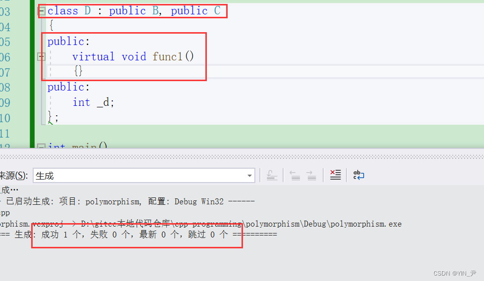 先将基类中的虚表内容拷贝一份到派生类虚表中,如果派生类重写了基类中某个虚函数,则用派生类自己重写后的虚函数的地址覆盖虚表中原来存的继承下来的基类的虚函数地址。 派生类自己新增加的虚函数的地址按其在派生类中的声明次序增加到派生类虚表的最后,但这个在监视窗口可能看不到(这个后面给大家验证)。