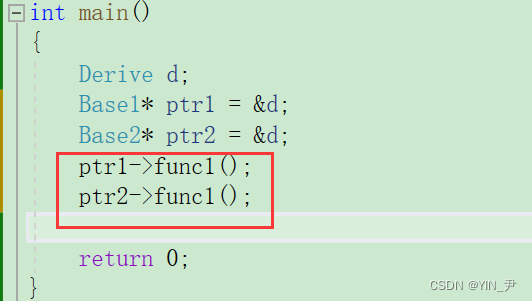 // virtual void func1() { cout << "Base2::func1" << endl; }