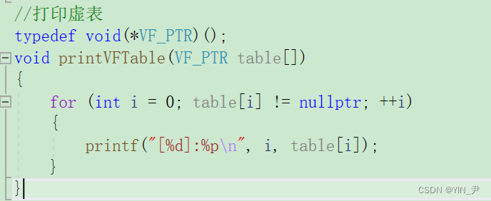 void (*) ()类型的,当然都写成这样其实也是为了我们方便演示和理解。 那我们typedef一下:typedef void(*VF_PTR)();那我们函数里面打印这个数组就行了