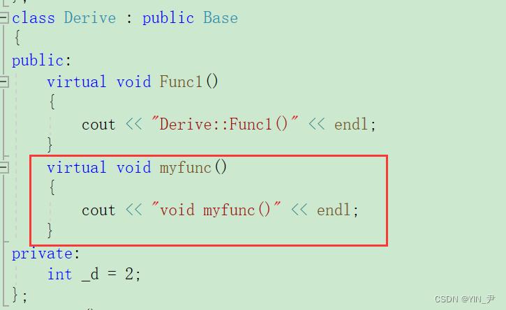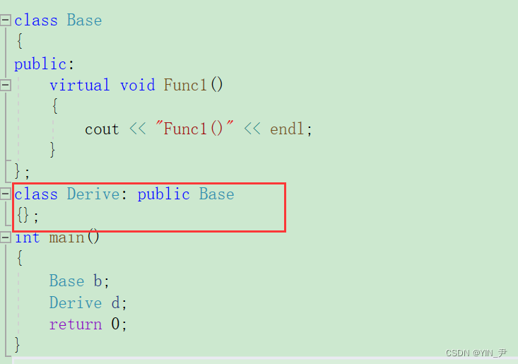 // virtual void func1() { cout << "Derive::func1" << endl; }