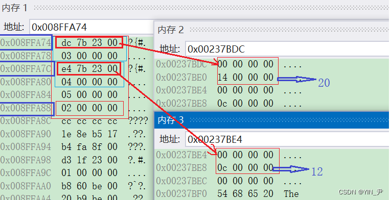 所以我们再通过内存窗口看一下: