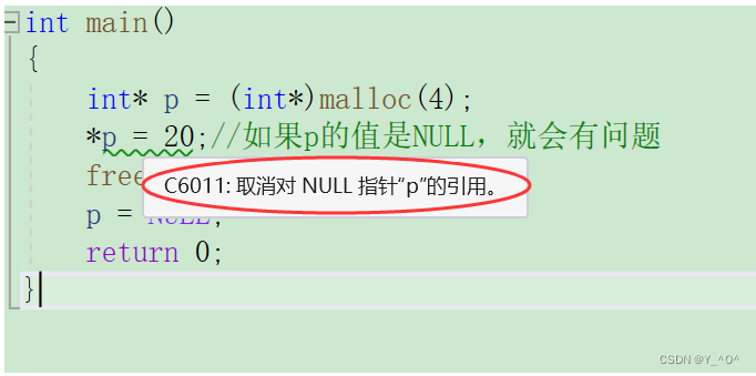 malloc进行一个判断或者断言,因为malloc有可能开辟空间失败返回空指针。 当然这还不算这段代码中最严重的问题。