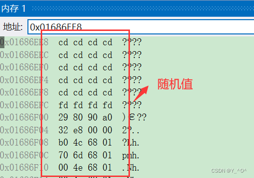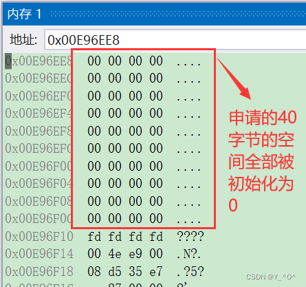 这里再给大家提一点: 我们发现开辟好的空间里面放的这些其实是一些随机值