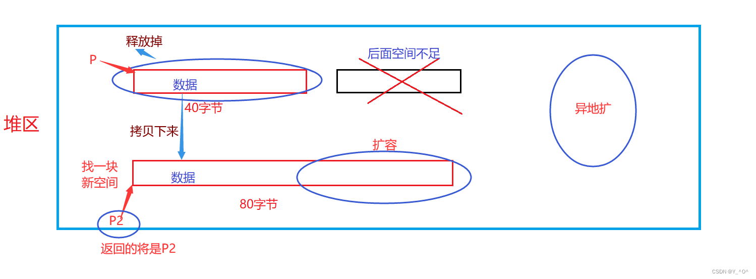 我们使用malloc申请了40个字节空间,放了10个整型。 那假设我们现在想再放10个整型,那原来的空间就不够用了,那我们现在就可以使用realloc 进行扩容。
