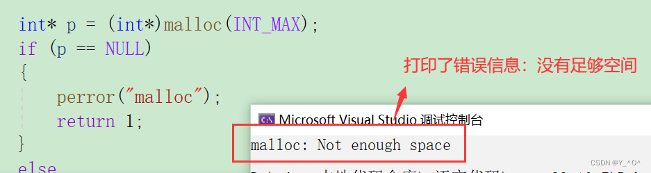malloc开辟空间也有可能开辟失败,当请求失败的时候,它将会返回空指针(NULL)。 我们知道空指针是不能直接解引用的。 所以,对于malloc的返回值,使用之前,我们一定要检查一下。 如果为空,那就是失败了,就不能使用了。 那什么时候又可能失败呢,比如当我们开辟的空间特别大的时候,就有可能失败返回空指针。 如果开辟失败我们可以做一个相应处理,打印一下错误信息,然后return一下,让程序结束。