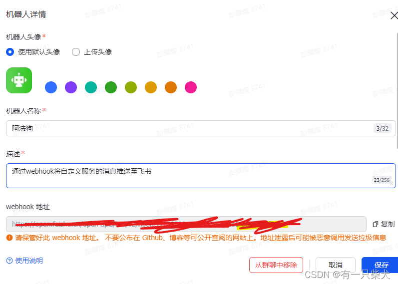 飞书群里添加机器人,可以查看飞书添加的文档。添加完机器人后,会得到一个hook地址: