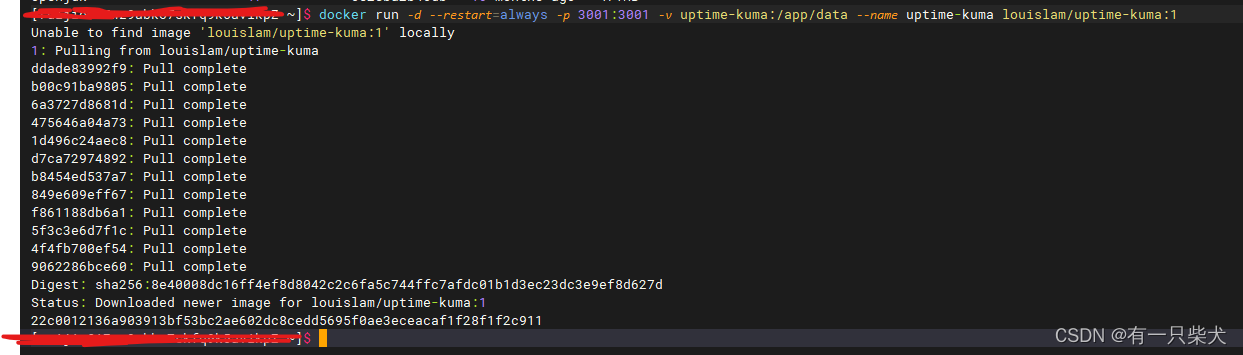 docker run -d --restart=always -p 3001:3001 -v uptime-kuma:/app/data --name uptime-kuma louislam/uptime-kuma:1