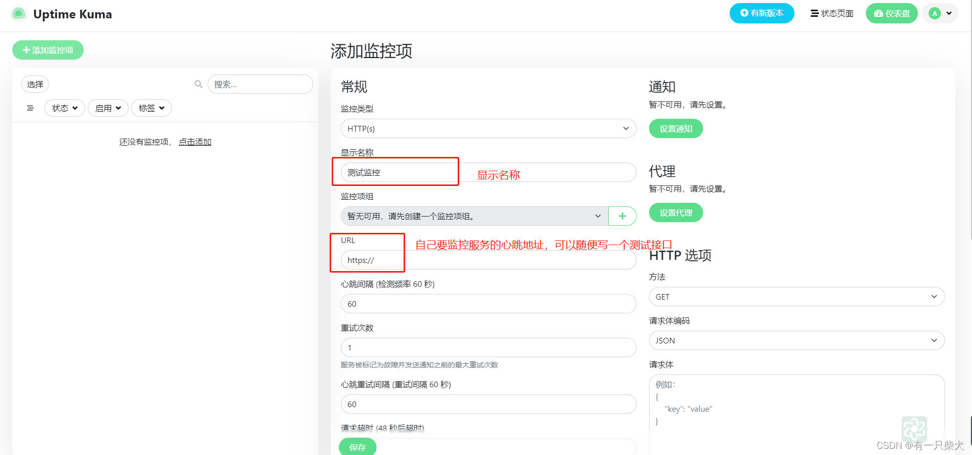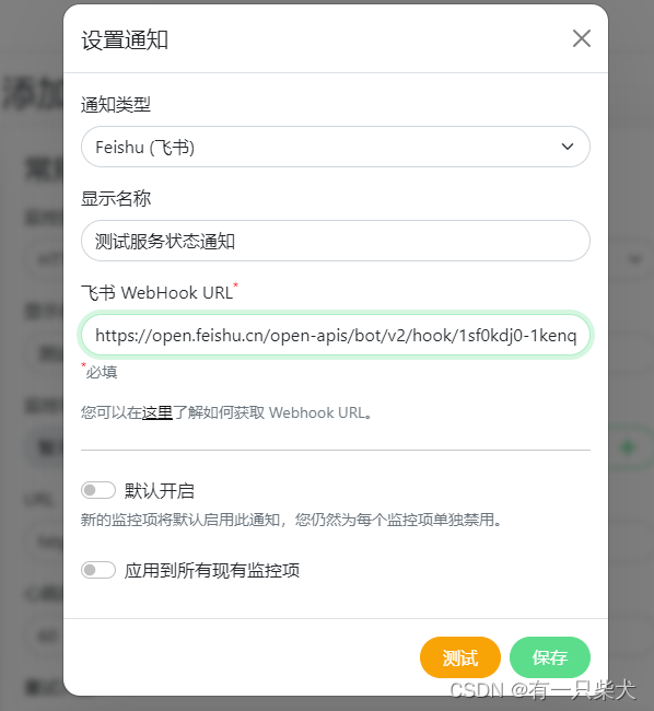 将webhook地址填写到uptime kuma中。