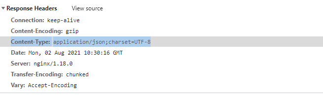 表示响应依赖于请求头中的Accept-Encoding字段。更多关注响应数据格式:Content-Type:application/json;charset=UTF-8,用于接收服务返回的数据格式