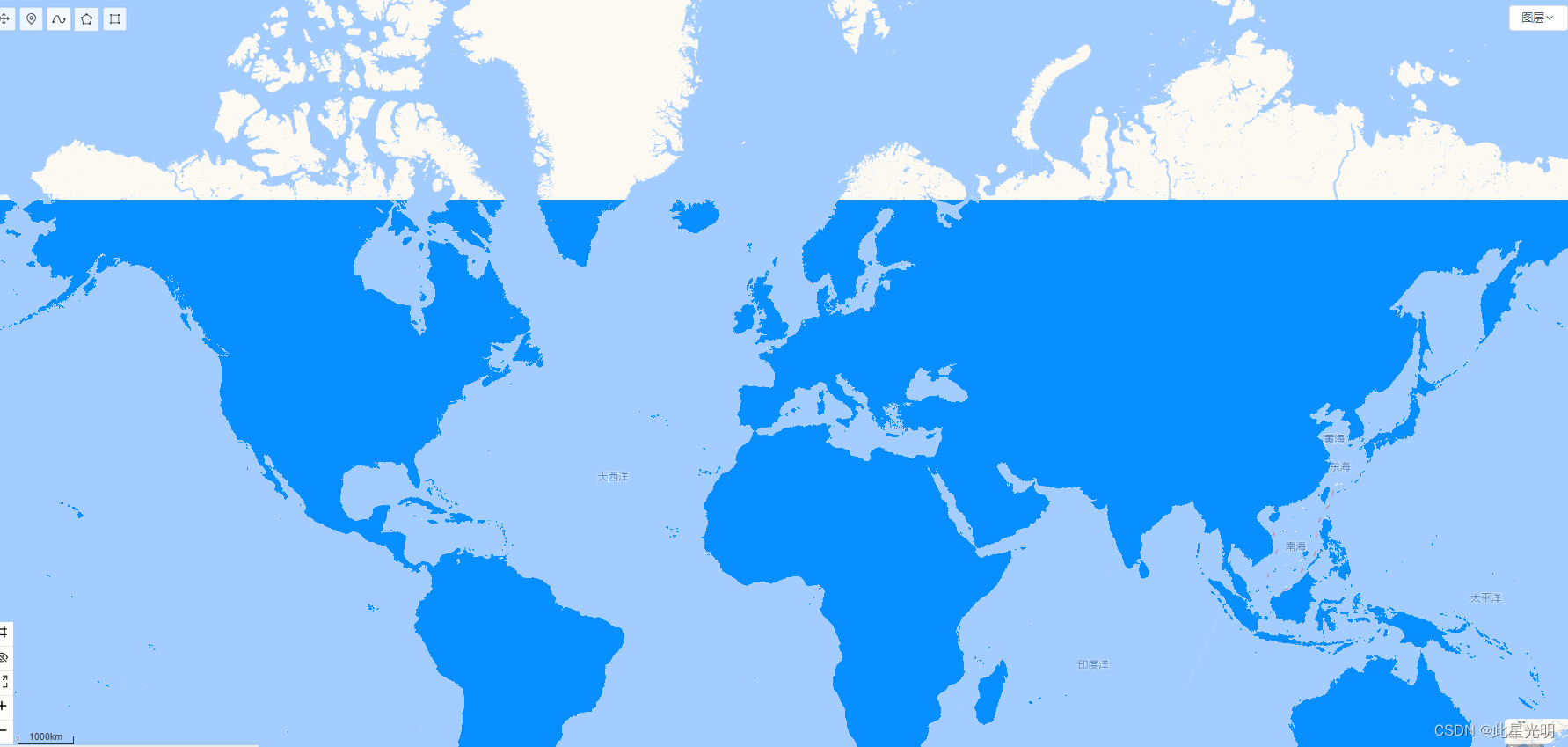 Map.addLayer(China, null, "China");当然如果要加载全球的矢量边界的话会等待相对较长的时间,此外没有边界线,这个和在GEE中加载的是不一样的。
