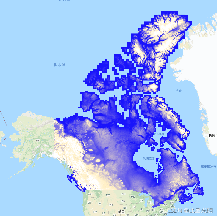 CDEM是由多个分辨率不同的DEM组成的。这些数据因纬度而异,基本分辨率为0.75角秒。更多信息见产品规格