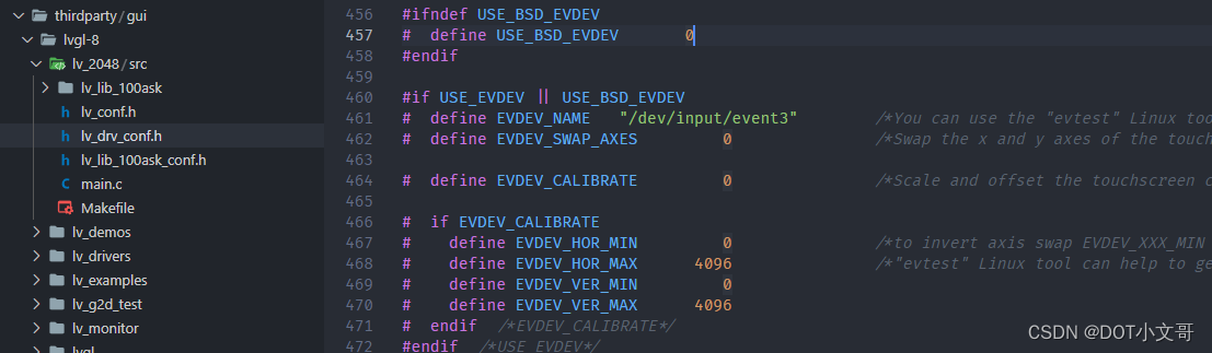 这时需要修改绑定的 event 事件号,其配置文件在 lv_drv_conf.h 内: