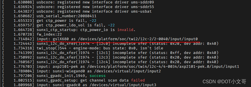 rm -f $(BIN) $(AOBJS) $(COBJS) $(MAINOBJ)做了以上操作,可能会发现触摸没有反应,这是因为触摸绑定的 event 事件号不对,默认的绑定是 event3 而查阅启动 log 可知,开发板的触摸屏对接的是 event0
