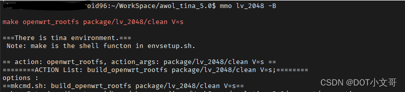 其中 mmo 的意思是 单独编译一个 openWrt 软件包,后面的 lv_2048 是软件包名。-B 参数是先 clean 再编译,不加这个参数就是直接编译了。