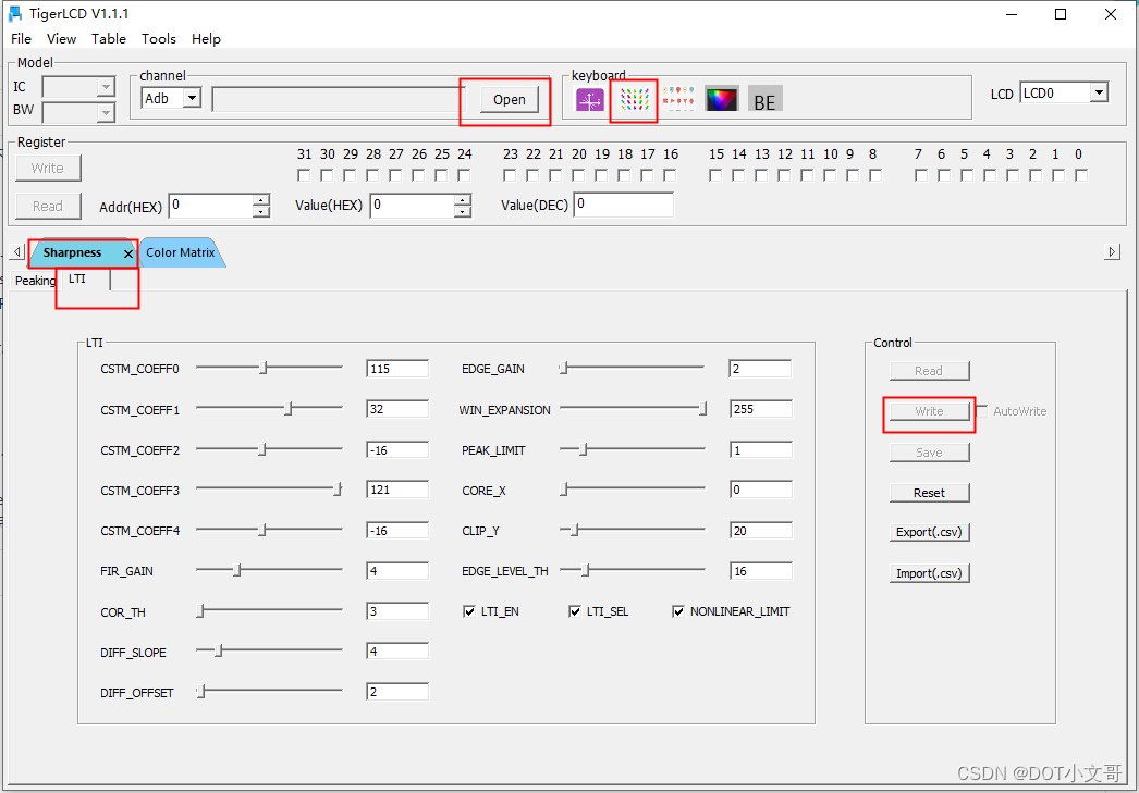 产品:T113 软件:tina5.0 其他:使用tiger lcd调试lti参数