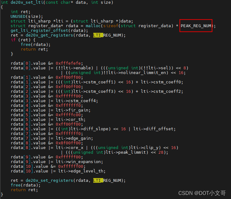 寄存器数量配置错误,导致写内存越界,破坏了链表结构LTI_REG_NUM