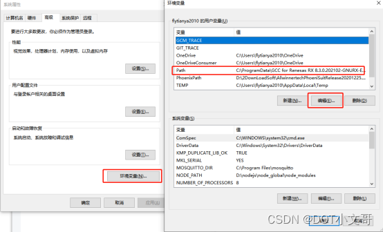 我的电脑-属性-高级系统设置-弹出“系统属性”窗口,选择高级栏中的环境变量,弹出的窗口中选择用户变量中的path路径,选择下载并解压的ADB。