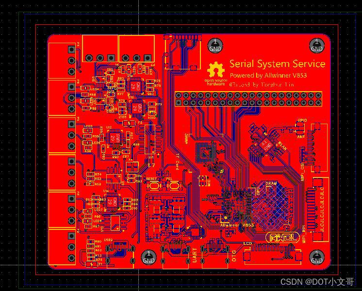 PCB是基于Yuzuki大佬的“高性能异构边缘AI视觉开发板”PCB板上画的,让我节省了很多时间。我只需要扩展我的串口功能部分和修改了部分电路与布局。
