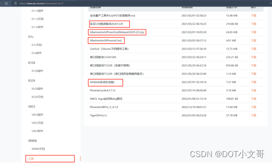 在全志在线开发者社区的资料下载页面下载红框所示的全部量产工具。