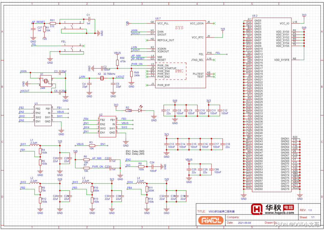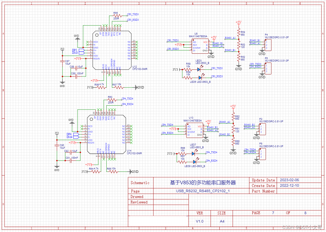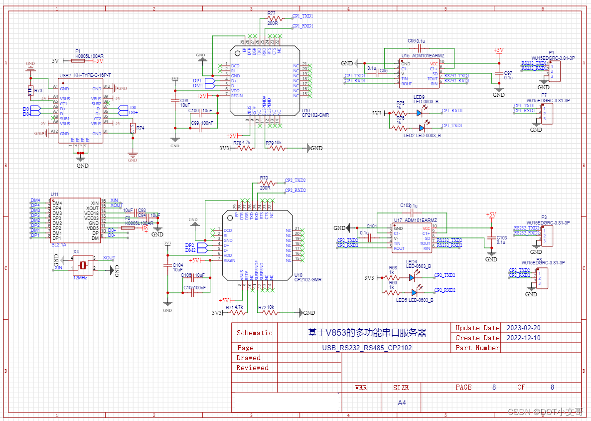实现的功能是基于官方提供的V853原理图和晕哥设计方案的基础上进行了功能扩展,新增了串口转换电路: