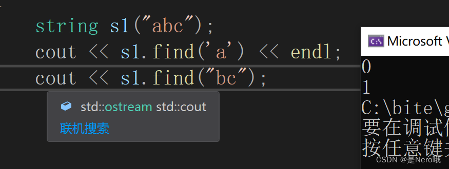 size_t find(char c, size_t pos = 0) const//默认从0开始找