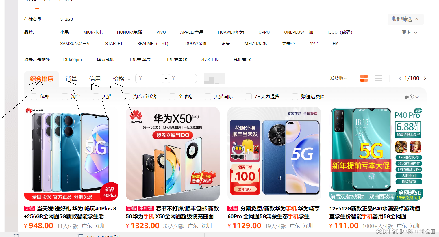 我们在淘宝购买商品的时候,可以选择让商品根据销量、信用、价格、综合程度进行排序
